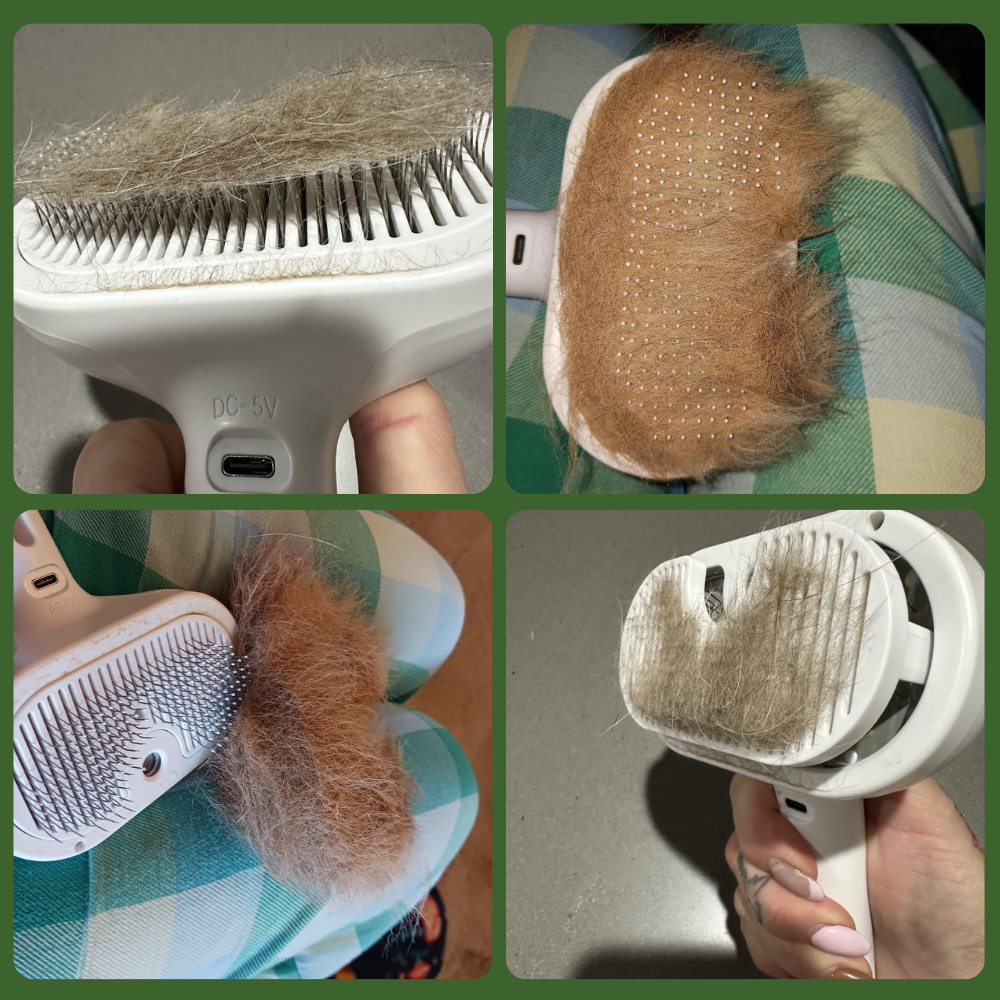 De stoom verwijdert statische elektriciteit, verzacht de vacht en hydrateert de huidβiets wat een gewone borstel niet doet.