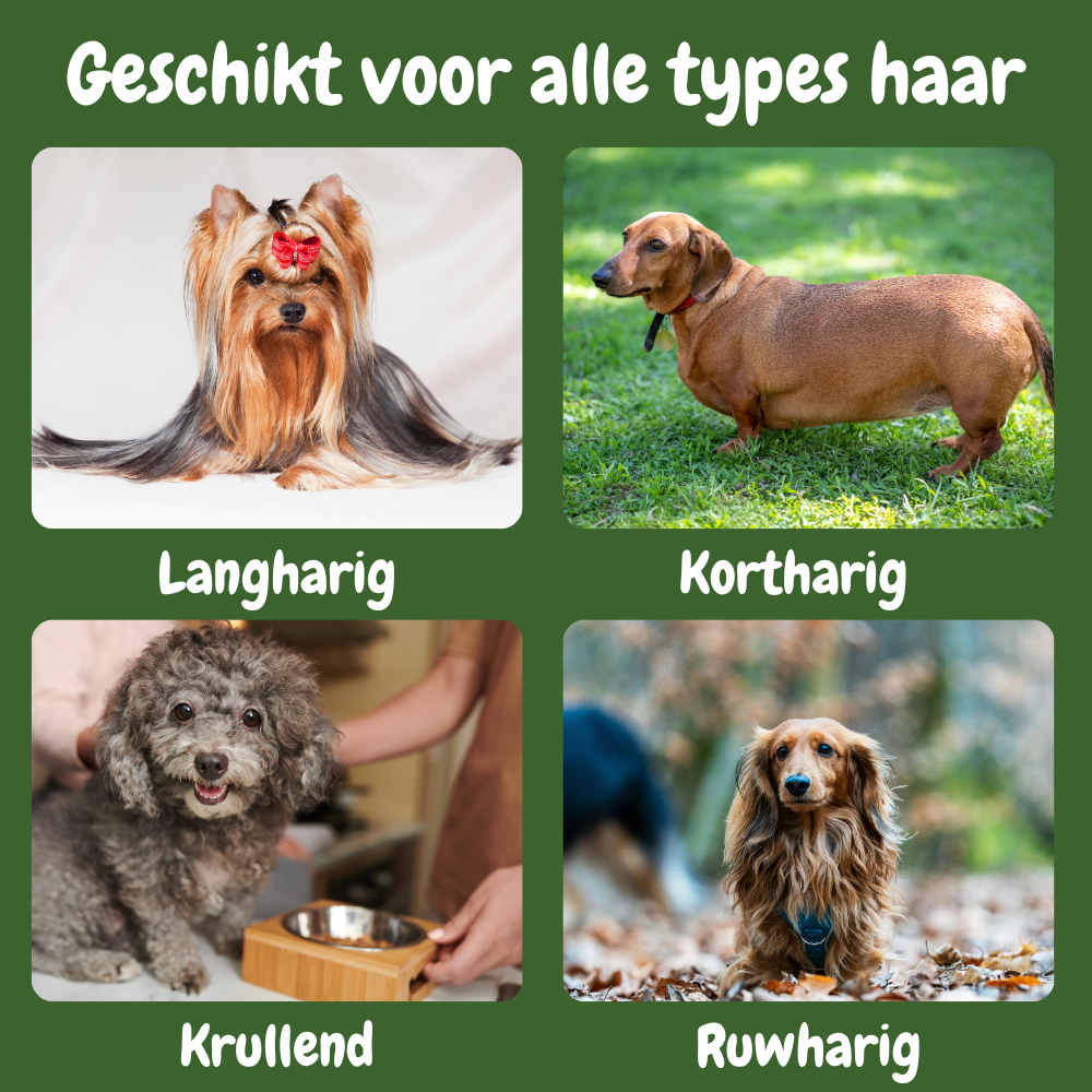 Ja, het is geschikt voor korte, lange, krullende of dikke vachten.